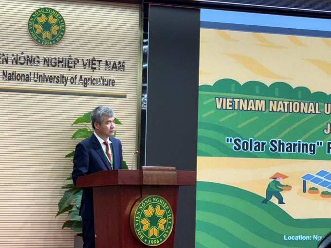 Phát biểu khai mạc chương trình, đại diện Học viện Nông nghiệp Việt Nam, GS.TS. Phạm Văn Cường nhấn mạnh ý nghĩa khoa học và thực tiễn của dự án Solar Sharing trong bối cảnh biến đổi khí hậu và yêu cầu phát triển nông nghiệp theo hướng xanh, tuần hoàn và phát thải thấp. Đại diện MAFF Nhật Bản cũng khẳng định sự quan tâm và cam kết hỗ trợ đối với các sáng kiến nghiên cứu ứng dụng năng lượng tái tạo trong sản xuất nông nghiệp.