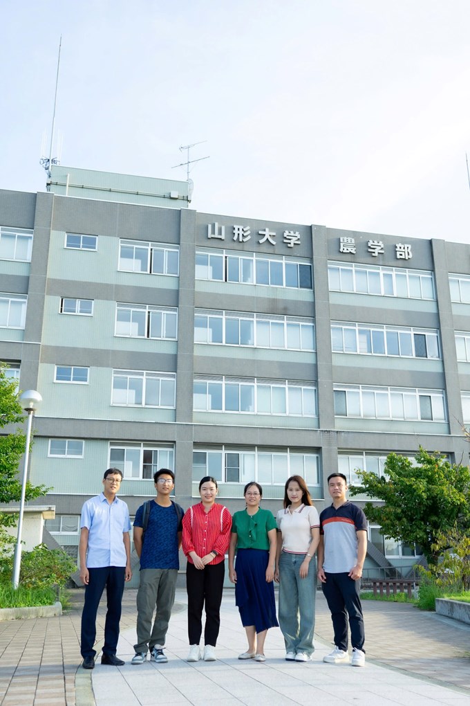 Chụp ảnh lưu niệm trước nhà khoa Nông nghiệp – ĐH Yamagata |