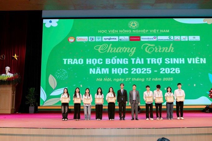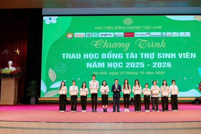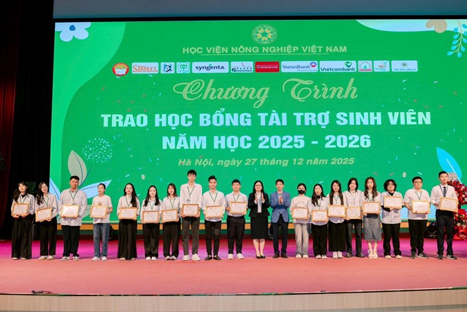 Sáng 27/12, Học viện Nông nghiệp Việt Nam tổ chức trao học bổng tài trợ năm 2025 cho gần 300 sinh viên.